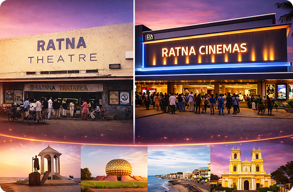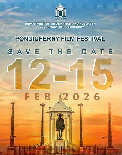 Refelect the essence of puducherry and the spirit of cinema in a logo